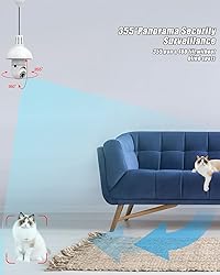 Wireless & Easy Installation: This security camera can be installed using a normal E27 bulb base(110V~240V), NO MORE EXTRA INSTALLATION STEPS. then you just need to connect th camera to the router, open the app to setup the camera within minutes. HD 1080P & Pan Tilt: This Pan Tilt WiFi security camera can provide you with a clear vision (Full HD 1080P resolution) at any time,You can use the APP to control the camera viewing angle to achieve 360 viewing without blind spots. Motion Detection & Real-time Alerts: this PTZ dome surveillance camera adopts a highly sensitive motion sensor, Once the camera detects the movement of the object after connecting it to the Internet, it will record the moving picture and notify you through the APP. Two-Way Audio & High Quality Service: Built-in microphone and speaker, the bulb security camera can have a conversation between you and your visitor, If you have any question, please contact us. We provide lifetime technical support and services. Remote Viewing & Night Vision: Our home security camera can control the viewing angle through APP,you can access remotely view anywhere and any time through your iPhone/Android phone/Ipad,Even in complete darkness, you can view clear images.