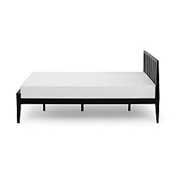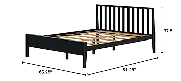 Modern Queen-Size Bed Frame with Slatted Headboard: Queen bed frame features a sleek, modern design that brings Scandinavian-inspired style to any space; Open, slatted headboard adds a light and airy look and feel Exceptional Craftsmanship: Queen bed frame is crafted with solid pine wood and non-toxic, low VOC finishes for superior safety and durability; Clean finishes promote a healthy sleeping space Strong + Stable: Solid wood bed frame features solid pine wood slats, a metal support bar, and 3 underbed support legs to create a high 750 lb. resting weight capacity; Strong metal-on-metal connections add increased strength and stability Easy Assembly: Queen bed frame is easy to assemble with instructions, tools, and required hardware included; Wood bed frame conveniently ships in one box Dimensions: Queen measures 84.25” L x 63.25” W x 37.5” H; This bed fits standard mattress sizes and can accommodate all mattress types including memory foam, spring, hybrid, or latex