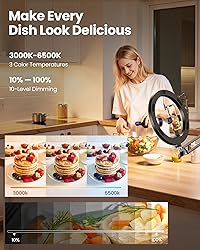 Ultra-Flexible Overhead Desk Ring Light -This ring light delivers soft, even lighting that flatters your subject and eliminates harsh shadows. The ultra-flexible arm tilts, swivels, and extends in seconds—ideal for video recording, photography, livestreams, and content creation Versatile Lighting for Photos & Videos -This overhead camera mount ring light with stand features 3 color modes (Warm, Natural, Cool) and 10 brightness levels for each—giving you 30 total options to match any setting. A high CRI (95+) ensures vibrant, true-to-life color for food, crafts, and skin tones. Whether you're filming a cooking tutorial or product showcase, your content always looks professional Portable and Useful Overhead Phone Mount -Doubles as a phone stand for recording, perfect for hands-free top-down content. The 30-inch arm extends smoothly to your desired length and holds your device firmly in place. This ring light with stand Great for overhead shots, step-by-step recordings, or live tutorials. Stable & Compact Clamp Design -The upgraded dual-spring metal arm adjusts smoothly and stays locked in place. The sturdy lamp head stays steady, even during long shoots. A strong desk clamp fits surfaces up to 2.4" thick—no slipping, no wobbling. Ideal for tight workspaces. What’s in the Box -You’ll get: 1× ring light, 1× cantilever arm, 1× desk clamp, 1× I-clip for phone, 2× cable clips, and user manual. Easy setup in minutes. Note: USB-powered. For optimal brightness, use a 10W (or higher) power adapter (not included).