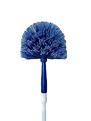 - The Original Webster Cobweb Duster with an extending pole has brightly colored blue bristled split-tips that capture dust and dirt. The pole extends to 60″ which means an adult can reach up to 11-foot ceilings. The Webster Cobweb Duster is super lightweight.