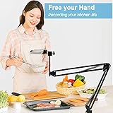 - Overhead Tripod Mount Articulating Arm, Cell Phone Holder Video Webcam Stand Lazy Arm Clamp Table Desktop Suspension Scissor Arm StandFeature:① 【Strong Compatibility】This overhead video stand features with 1/4 inch screw ball head, which has wide compatibilities, fit well with smartphone clamps, microphones, lights, action cams, 5" monitors, webcams, etc. ②【Super Flexibility】 With 360° universal ball head, extendable, 180° adjustable and 360° rotatable suspension scissor arm, 240° up and down head, this overhead tripod mount is extremely flexible, you can clamp it at anywhere you want, super convenient. ③【Durable and steady】Made of robust metal material, this overhead filming equipment is very sturdy. Double-braced arms with suspension springs on each boom arm make it more sturdy and without shaking or dropping when filming your videos. ④【86cm/33.86" Length】The articulating arms can extend up to approximately 86cm/33.86"; Phone holder can fit smartphone wide from 55mm to 85mm (2.16-3.45inch); Max load weight is Approx.0.56Kg; The mounting base fit the desktop, table, sideboard maximum thickness 4.5cm/1.77". ⑤【Wide Application】The overhead arm comes with cell phone clip and 1/4” screw universal ball head, easy to assembly and clamp to the desk. It’s perfect for filming overhead videos or taking pictures and can be widely used in drawing, down-facing crafting, art, cooking, etc.Specification:Material: Stainless Steel+ ABSWeight:400gLength:33.86 inchesAfter-sales ServiceAll product sold by our store can enjoy 12-month replacement to ensure and lifetime friendly customer service. if you have any issues about our products,Welcome to contact us