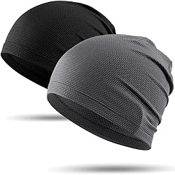 Instant Cooling for Hot Days: For extra relief in warm weather, simply soak the skull cap in water, wring it slightly, and put it on. The special 3D mesh fabric promotes airflow to help with heat dissipation, keeping you cooler even under intense sun Stay Dry and Comfortable: Our sweat-wicking, lightweight, stretchy, and breathable skull cap for men helps keep sweat away from your eyes and forehead, so you can focus on your activity with less discomfort. Ideal as a sweat absorbing sports cap for football, workouts, and construction sites Versatile Design: Wear it under a helmet, hard hat, or as a standalone beanie alternative - our breathable skull cap for men helps protect your skin while managing sweat and odor, making it suitable for various activities. It acts as a perfect hard hat hair protector Perfect Fit for Everyone: With a 23cm/9-inch deep design, this skull cap provides ample room for voluminous hair, afros, curls, and dreadlocks. Unlike standard skull caps that often have a shallower fit, it's designed to comfortably accommodate and secure thicker hairstyles without feeling tight or restrictive. The ultra-soft, seamless fabric also provides exceptional comfort for bare heads, making it ideal for anyone seeking a smooth, irritation-free fit Wear It Anywhere: One-size-fits-most design with high-elasticity fabric works for walking, hiking, running, cycling, gym workouts, tennis, basketball, and other active pursuits. Lightweight for all-day wear Great Value Set: Get 2 high-performance skull caps for men in 1 convenient set! Perfect for keeping one in rotation while the other is in wash, or for sharing with your workout partner, family or friends. Never be without your essential sweat protection
