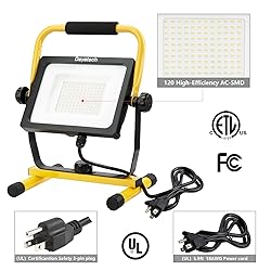 Using superior quality led chips and the 120 led chips spread more light and offer a maximum luminous flux of 10000 LM and a large amount of light. The innovative fin-type heat sink design at the back provides great heat dissipation to prolong LED lifespan. Rotating Lamp Head- The adjustable thumb screw knob allows the easy position of the light at any angle. Cast a 120-degree beam angle, shadow-free and anti-glare. DAYATECH work light never gets hot, just warm to the touch. The light they emit is very color-neutral. Since the 120 LEDs are not a single light source like a halogen bulb, there isn't a hard shadow edge on the wall, but a diffused fade instead. The outdoor work light is lightweight and space-saving. With a portable handle design, you can bring it anywhere such as the garage, backyard, workshop, warehouse, shed, studio or any place that needs a light
