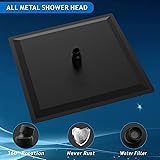 NOTE: This showerhead is constructed from solid 304 stainless steel, weighing 6.4 pounds, featuring an oversized 16x16-inch design with 324 nozzles. Therefore, it is NOT suitable for areas with low water pressure! Please read the instructions before purchasing. Thank you! EXTRA LARGE SHOWER HEAD - Enjoy a luxurious hotel spa-like shower experience with our extra large shower head that covers two people at once. ALL-METAL MATERIALS - Made with high-quality all-metal materials, our shower head is leak-proof and rust-resistant, with a modern matte black look that's perfect for any bathroom. SELF CLEANING NOZZLES - Our touch-to-clean nozzles feature 324 soft silicone jets that prevent lime scale build-up and are easy to clean, ensuring maintenance-free enjoyment. ADJUSTABLE ANGLES - With adjustable angles and a swivel ball connector, you can fix our shower head to any angle you like for the best shower experience possible. EASY TO INSTALL - Our shower head is easy to install and works with standard 1/2'' pipe threads, so you can mount it on the shower arm in just a few minutes without needing a handyman.