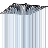 Voolan Oversize Rain Shower Head - High Flow Square Rainfall Showerhead - Waterfall Full Body Coverage - Universal Ceiling or Wall Mount (16 Inch, Matte Black)