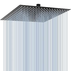 - Extra large, ultra-thin and powerful water flow, the Voolan Rain Shower Head is an extra-large 16*16 inch hotel style. It is only 0.08 inches thick. The combination of ultra-thin and air intake technology increases water pressure and optimizes any water pressure, just like a full and dynamic massage on your skin. The shower head is made of 304 stainless steel for maximum rust resistance and long life. In addition, we use food-grade silicone nozzles that allow for easier cleaning of your shower head, with no risk of clogging, ensuring your safety and health while enjoying your bath. An oversized surface with a mirror chrome finish makes this shower head beautiful and a perfect match for any bathroom decor.