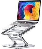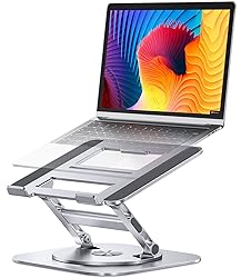 - AOEVI Adjustable Laptop Stand with 360 Rotating Base, Computer Stand for Laptop Ergonimic Foldable Laptop Riser for Desk Compatible with MacBook Pro/Air Notebook up to 16 Inches, Silver