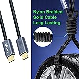 140W PD USB C to C cable 5A 28V super fast charges USB-C phone, drawing tablet, gaming laptop, charger, Compatible with MacBook Air, iPad, SSD hard drive, docking station and switch (NOT for video) Ultra fast charging cord with E-marker smart chip rapid charges type C / thunderbolt devices with 140w power delivery PD 3.1, Max current 5000 mAh, compatible with lower power e.g. 100W, 80W, 65W, 60W Powerful 6.5 feet USBc to USBc cable transfer tons of movies, songs quickly with 480Mbps data transfer high speeds (transfer 1GB movie in about 30 seconds) Solid USB type C to type C cable with Aluminum housing gold plated connector for stable signal connection, nylon braiding wire body for durable usage life and tangle-free design for easy travel 6.5 ft USB C PD cable (C to C cord) is compatible with laptop MacBook, ChromeBook, Cellphone Samsung, Google Pixel, LG, iPad Pro, Steam Deck, etc (DO NOT support video output and monitor extension)