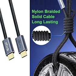 - NOTE: for power delivery and data transfer only, NOT for video 2 meters 5a type c cable to power laptops, tablets and phones; transfer data 5A USB C Charging Cable 2 Meters- 140W Fast Charge USB c fast charging cable is well built with high quality E-marker smart chip that ensure smooth and safe charging, meets with USB Power Delivery 3.1 specification (PD3.1) to handle max power 140W 28V/5A, as well as 120W, 100W 20V/5A, 65W, 60W, etc. Time Saver: 140W PD quick charge (28V 5A) means this short USB c to c type fast charging cable can deliver the power without much drop-off from the power source, compatible with your MacBook Pro 16” laptop super fast fuel to 60% in just 45mins, or compatible with Samsung S22 Ultra fuel to 88% in just 30mins — 58% faster than a 60W USB-C to USB-C cable! High Speed Data Transfer USB cable A great USB c charger cable replacement to replace of your broken original 6ft 100W USB C cable 5A, this USB 2.0 cable supports 480Mbps high speed data transfer, transfer 1GB movie in 30 seconds. Heavy duty usb c charging cable Flex nylon braided wire body for durable usage life and tangle-free design for easy travel. Specific : USB c-type cable 6.5-foot Power:140 watt, 120 watt, 100 watt, 65 watt, 60 watt Current: 5000mA max. What’s Included: 1x USB type C cable to USB 6.5 feet