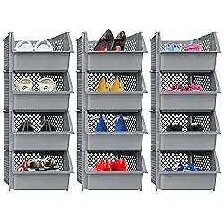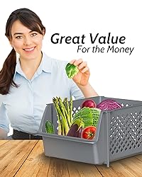 KEEPS ESSENTIALS ORGANIZED AND VISIBLE - Stackable bins hold foods, toys, utensils, and toiletries without bending off. Set of 12, Each bin size: 15"L x 11.7"W x 7.1"H SPACE SAVING - Fit in small corners or areas like kitchens, bathrooms, bedrooms, and offices. Nestable when empty to save more space. QUICK AND EASY ACCESS TO CONTENTS - Unlike others, Skywin has an open-front design that allows you to grab your essentials without removing bins stacked on top. KEEPS CONTENT FRESH AND DRY - Mesh sides provide ventilation that keeps contents fresh and dry. GREAT FOR ORGANIZATION - Organize your food items, kitchen utensils, bathroom essentials, and more with these versatile and space-saving storage bins, making it easier to locate and access your items whenever needed.
