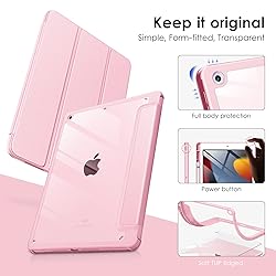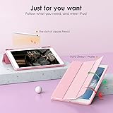 VIKESI Case for iPad 9th / 8th / 7th Generation 10.2 inch (2021/2020/2019 Released), Clear Back, TPU Shockproof Frame Cover[Built-in Pencil Holder,Support Auto Sleep/Wake] for ipad 10.2 - Pink