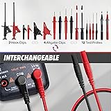 - The PowerBear Multimeter Test Leads Kit offers high-quality, safe, and user-friendly solutions for both professionals and DIY enthusiasts. This test probes kit is designed to cover all your testing needs, featuring multimeter leads, replaceable probes, alligator clips, banana plug adapters, a test tweezer, multimeter pen, and needle probes. With this array of accessories, you can mix and match to handle various testing scenarios effortlessly for fluke multimeter or klein multimeter. Our Digital Clamp Meter test leads kit is thoughtfully crafted for ease and comfort during use. The precision and sharpness of the test probes make them perfect for tight spaces, ensuring accurate readings every time. Additionally, all accessories are coated with a PVC insulation layer, guaranteeing your safety and peace of mind during testing.