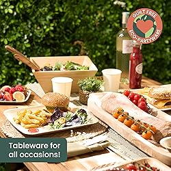 🌱 Green Alternative to Plastic: Made from biodegradable Areca leaves through natural production process, our palm leaf made bamboo plates disposable 80 pack includes 9" large palm leaf plates (20pc), and birch wooden cutlery set including bamboo forks (20pc), knives (20pc) & spoons (20pc). 🌱 Rustic Stylish Tableware: The natural palm leaf formation of each palm plates creates a more unique rustic appearance than banana leaf plates, wood paper plates, bamboo paper plates or other bamboo disposable plates for parties. An ideal eco choice for your gatherings. 🌱 Microwave & Freezer Safe: These biodegradable plates and utensils are durable, and can hold up well with both hot & cold foods, and are safe to use in both microwave and freezer. Better than wood disposable plates. 🌱 Compact & Sturdy: The palm leaf bamboo plates disposable tableware is ideal for serving main & side dishes. With the leak proof design, the square bamboo plates can be used as a bamboo appetizer plates or bamboo dessert plates & more. 🌱 Disposable & Biodegradable: Unlike conventional bamboo party plates, wooden disposable plates or plastic plates, our palm plates combine the convenience of disposables with the sustainability of natural materials, making cleanup effortless and guilt-free.