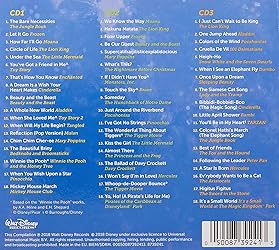 - A fantastic refresh of the hugely popular Ultimate Disney set. Featuring a new track list with hits from the latest Disney movies along with those classic all-time favorites. This 3-disc compilation includes the following classics hits: The Bare Necessities (from The Jungle Book) Let It Go (from Frozen) A Whole New World (from Aladdin) Hakuna Matata (from The Lion King) What's This? (from The Nightmare Before Christmas) I've Got No Strings (from Pinocchio) Colors of the Wind (from Pocahontas) You'll Be in My Heart (Phil’s Version from Tarzan) Best of Friends (from The Fox & The Hound) Reflection (from Mulan) and many more! Please click the above artwork for the full track listing.