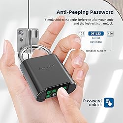 🔒【Smart Combination Padlock】Combination padlock outdoor,Suitable for everyone with this smart padlock,4-8 digit code,thousands of combinations available.No need to carry a key,quick and easy to enter the code to unlock the door. 🔒【Easy to Use】The combination padlock easy to set up and create your own combinations,you can set your own 4-digit to 8-digit combination for easy recall.You can watch the video details or check the padlock manual to set the code and initialise the code. Any questions you can contact seller email. 🔒【Padlock Size and USB Rechargeable】This smart padlock weight 202 grams (0.45 pounds), size of 8.8H*5.8L*2W cm(3.50*2.1*0.83 inches),usb charging once standby time up to one year,unlocking times can reach more than 10,000 times. 🔒【Wide Range of Applications】This combination padlock can be used as a truck lock,warehouse lock,outdoor gate lock,garage lock,fence lock to use.Anything can be locked with this padlock. 🔒【Weatherproof and Waterproof】Made of zinc alloy, sturdy and durable.IP66 rated waterproof, suitable for outdoor use for a long time.Anti-scratch design, premium gunmetal gray smart locks.