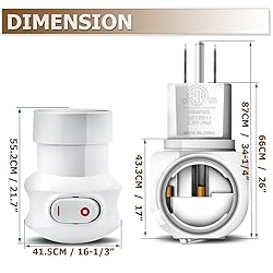 ADDING AN EXTRA LAMP SOCKET -Great for adding a bulb security camera, an extra light,functional E26 bulb. Pairs well with motion sensor light bulbs and decorative bulbs EASY TO USE AND CONTROL -Simply Plug directly into existing outlet and On/Off Switch could control the bulb easily.You don't need to unplug it when you want to turn the bulb off ROTATABLE LIGHT SOCKTS -The base of the plug is 360deg rotatable.Pull and rotate the plug base, you can change the direction of the socket. Great for a bulb camera installation QUALITY MATERIAL -ETL Listed,COPPER connector and fire retardant ABS material,carries wattage up to 60W APPLICATION -Ideal for creating an instant camera bulb, night light, mood lighting or smart bulb