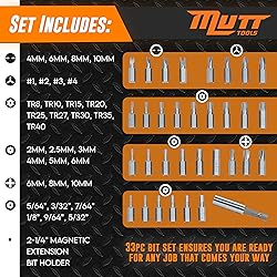 Mutt Tools 33pc Security Bit Set - Complete Torx Security Screwdriver Set with Tamper Proof Bits - Star Bits, Hex, Spanner, Tri-Wing & Torq - Professional Security Torx Bit Set
