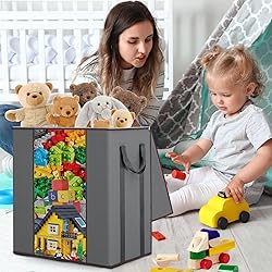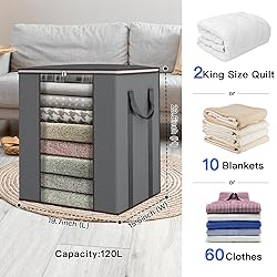 LARGER CAPACITY: Extra-large 2pcs120L storage bag can hold 4 king size comforters and 4 pillows with room to spare. Measures 19.7 L X 15.6 W X 23.6 H. QUALITY FABRICS: Made of sturdy, breathable 100 g/㎡ fabric to keep your items fresh and neat. Perfect for seasonal clothing, comforters, pillows, bedding, quilts, sheets, duvets, blankets, and toys. STURDY ZIPPER: Heavy-duty metal zippers go almost all the way around, making it easy to set items into the bag. Clear PVC in the front allows you to find what you need quickly. REINFORCED HANDLE: 2 reinforced handles sewn down to the bottom make lifting and carrying easy. VERSATILITY: Multifunctional storage bag is perfect for use in closets, wardrobes, attics, apartments, basements, garages, RVs, camping, college, laundry rooms, bedrooms, and cabinets. Folds easily for storage when not in use.