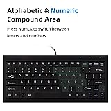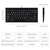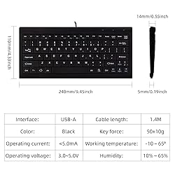 Mini keyboard: 240mm × 110mm × 14mm (9 inches) small keyboard with 1.4M USB cable, does not take up too much of your placement space, while its length can meet on the desktop or desktop under the connection with the computer. Plug and play wired keyboard: no need to install any driver, plug-and-play USB interface is suitable for most devices with USB ports, to avoid the wireless keyboard's battery out of power, WIFI signal is not good for a variety of problems. 82 Scissor Key Design: The compact 82-key keyboard features an X-shaped design with blue numeric keys, and the small size of the keyboard can meet all your key needs. Comfortable and silent keyboard: The keyboard is made of high quality ABS material, with sensitive keys, ergonomic tilt angle and two pads under the keyboard, which is both comfortable and quiet to use, reducing your work fatigue. Wide compatibility: Compatible with Android and Windows 10/8/7/Vista/XP, Raspberry Pi, you can use it in most devices. With OTG function, it can also connect with cell phone for data transfer and input operation such as keyboard, U disk, card reader, MP3 and digital camera without computer as a relay station.