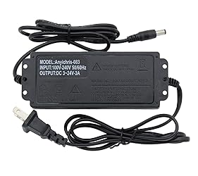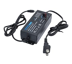 3-24V Adjustable Voltage Supply with any voltage between 3~24V, all-in-one multipurpose AC/DC adapter widely used for many 3V~24V 3A small household electronics. Universal DC port 5.5mm X 2.5mm universal DC port,match with variety of electronic products. LED Dispaly Voltage Through the LED voltage display, you can more intuitively know whether the voltage you adjust meets your needs, and more effectively control the power supply. Strong durable tail card The tail card uses high-quality materials, not easy to break, can be used for a long time. 8PCS DC adapter plugs Equipped with multiple connector to meet your various power needs.