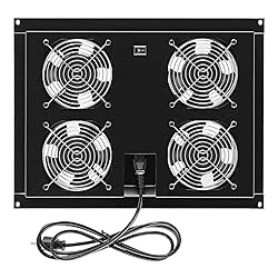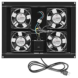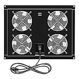 NavePoint 42U Cabinet Top Mount Fan Panel, Panel Includes, 4 Fans, Server Cooling System, 110 50/60Hz, 17.2 x 13 x 2 Inches, 6ft Input Cord Length, Noise Level 43db-A to 47db-A Max Steel with Powder