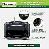 • Stay Fit & Healthy - Enjoy Delicious Homemade Meals Everywhere With The #1 Meal Prep Containers By Freshware!Are you sick and tired of spending money on buying ready-made unhealthy food?Meet The Ultimate Bento Boxes, Your New Best Friend In The Kitchen!With 1 spacious compartment space, you can use this set of 50 smart lunch boxes for various snacks without them mixing all together. Your meal will look and taste great all day long!Provide yourself and your kids with a decent meal of controlled portions with main course, salad and even dessert, all nicely packed in this super convenient lunch box!Supreme Quality and Thoughtful Design Combined!Made exclusively of 100% food-safe, BPA, PVC and Phthalate free Polypropylene, these reusable plastic containers are the safest choice you can make.Thanks to their unmatched quality you can:✅ Prepare more meals in advance and freeze them for the busy days when you won’t have time to cook.✅ Microwave them to enjoy a delicious hot meal.✅ Clean them hassle free in the dishwasher!Box Size: 8 x 5.6 x 1.6 inch. Volume: 28 oz. Lid Size: 8 x 5.5 x 0.5 inch. 50-Pack of airtight lids and freshness containers.These Meal Prep / Portion Control / Food Storage Containers are a great new alternative to expensive plastic containers. Perfect for kids lunch box, meal box for work while they are highly recommended by most fitness experts for meal preps, and portion control.Get It With Confidence: Freshware offers you their FREE Replacement or Refund policy. That’s our promise!Let’s start your Healthy Living Style by adding the Best Meal Prep Containers by Freshware to your cart today! CHOKING HAZARD – Small parts. Not for children under 3 years or any individuals who have a tendency to place inedible objects in their mouths.