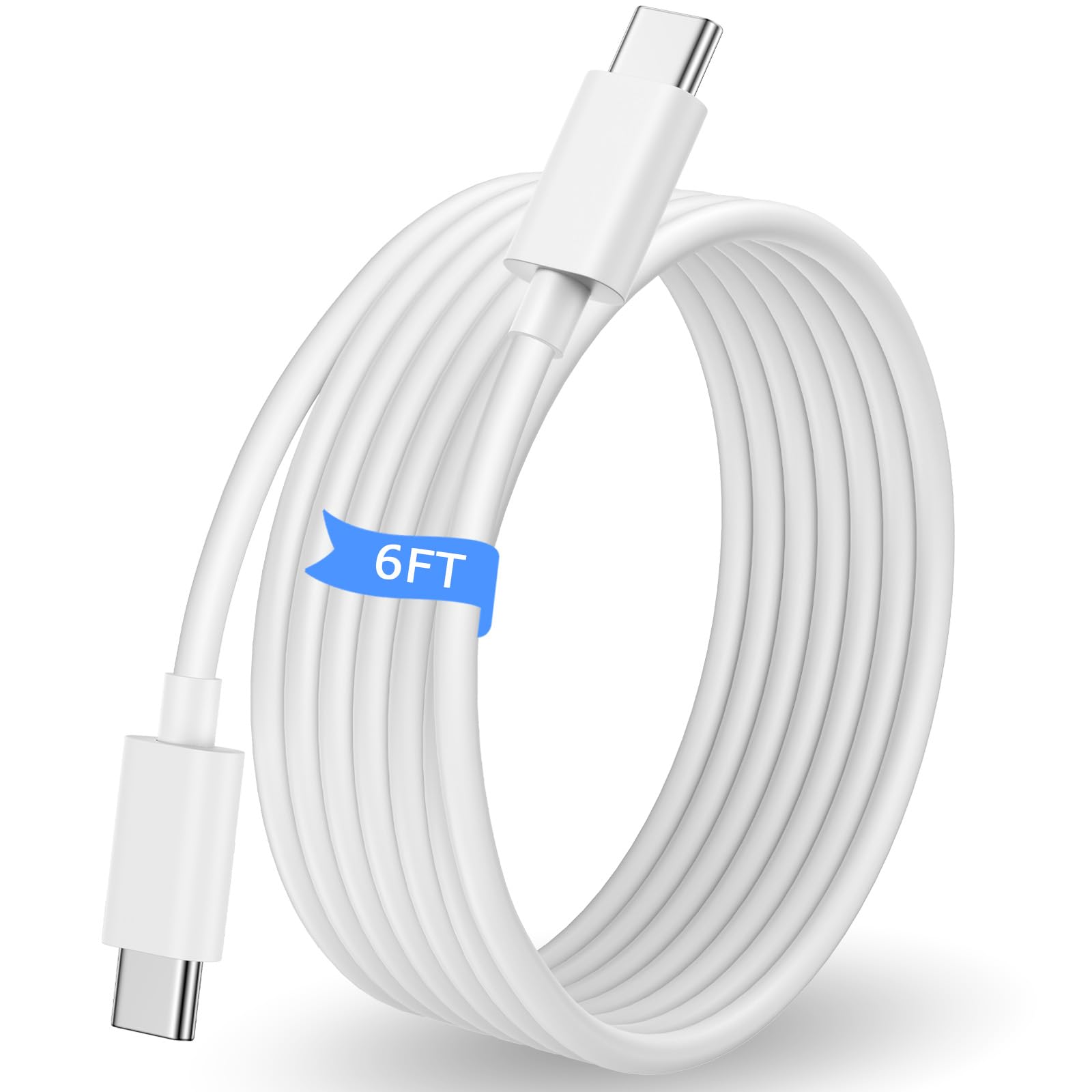- 6ft Nylon Braided Type C to Type C Cable Included 3 Advantages: 60W Blast Past Fast Charging, 90° Right Angle, Nylon 66 Braid 1.USB c phone charger android cord support PD3.0 & QC3.0 FAST charging for Samsung Galaxy S23 A14 5G A54 A34 series from 0 to 89% within 30 mins, iPad Pro 64% within 30 minutes, Macbook air 50% within 30 minutes. 2.Very comfortable to hold while charging due to right angle at insertion point, doesn’t bend samsung galaxy a14 5g charger cord, increase life expectancy. 3.The right angle connector is perfect for charging your phone when setting the phone upright on your car center console. 4.The high-quality quad-core copper wire supports a maximum fast charging speed of 60W MAX and a data transfer speed of up to 480Mbps. 5.This is Type-C to Type-C cable. Not USB-A or iPhone connector. 60W Fast charging for almost USB-C devices, like phone, tablet, laptops and more. Compatible models: Google Pixel 10a 10 Pro XL,10 Pro,10,10 Pro Fold,9a 9 Pro XL, 9 Pro, 9, 9 Pro Fold, 8a 8 Pro,8,7a,7,7 Pro,6,6 Pro,5a 5G,5a,5,4a 5G,4a,4 XL,4,3a XL,3a,3 XL,3,2 XL,XL,Pixel Samsung Galaxy S26 Ultra S26+ S26,S25 Ultra S25+ S25 S24 Ultra,S24+,S24,S23 FE,S23 Ultra S23+ S23,S22 5G,S22+,S22 Ultra 5G,S21 FE,S21 5G, S21+ 5G,S21 Ultra 5G,S20 FE 5G,S20 5G,S20 Plus 5G,S20 Ultra 5G,S10 S10e S9 S8 Plus Samsung Galaxy A36 A56 A26 A16 5G A15 5G A35 A25 A55 A24 4G,A14 5G,A54 A34,A23 5G, A13 5G, A33 5G, A53 5G,A52s 5G, A03s A02s A22,Z Fold 7 6 5 4 3, Z Flip 7 6 5 4 3 5G, A52 5G,A52 A72 A32 A02s A12,A9,A8 Star Samsung Galaxy A11 A20 A20s A21A A21s A30 A30s A31, A32 5G, A40 A40s A41 A42 A50 A50s A51 A60 A70 A70s A71, A71 5g, A80 A81 A90 A91 iPad Pro 2026 2025 2018/2020/2021. and more USB-C powered devices. USB-C Android Charger Cord Max output: 60W Material: Nylon Braided Length: 6 Foot USB Port: Type C to Type C Charger Cord Package: 2 Pack Type C Android Charger Cable 6ft