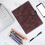 FYY A5 Binder Refillable Planner Notebook 6 Ring PU Leather Binder Journal with Pockets, Dividers, Refill Paper Dark Brown