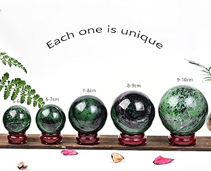 【Ruby Zoisite Quartz Crystal Ball】:size:60-70mm,Material:Natural Ruby Zoisite Stone,Quantity:1Pce,with Free base,Naturally mined crystals,retaining their natural texture,are carved with the Sphere shape.It stands out with a gentle and attractive crystal glow 【Crystal Decorative Ball】:Desk and table decoration suitable for home,office,and spiritual chakra house,etc.Gift the crystal ball to Mother's Day,birthday,festival,housewarming party,Christmas, Valentine's Day gift who like Ruby Zoisite crystal balls or gem collectors family and friends 【Functional Stone】:It is an amazing crystal ball purifies the mind and gathers energy Chakra Reiki Balancing working to heal your heart.for Reiki,Energy Healing,Meditation,Attracting Love,Palm Stones,TouchStones.Ruby Zoisite crystal ball offers you stabilizing and a wonderful effect on your emotional body 【What You Receive】:You will receive a Ruby Zoisite Quartz Crystal Ball Sphere with wooden base,Diameter2.5-2.8Inch.Each and every specimen is unique and you will receive ones similar to the image shown 【Service Guarantee】:Every piece of quartz is a gift of nature,hand-carved and polished after careful selection,Ruby Zoisite is natural stone,cracks or chipped will be normal,and color and veins of every ball is unique.When you receive it,if you are not satisfied with it,please contact us.we will solve it for you and make you satisfied 100%.Wish you a pleasant shopping