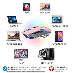 Wireless Mouse Bluetooth, Silent Rechargeable Multi-Device Mouse, BT5.0/3.0 and USB Cordless Computer Mice, RGB Light up Gaming Mice for Laptop PC Mac Macbook Air/Pro iPad Tablet Office Games -Pink