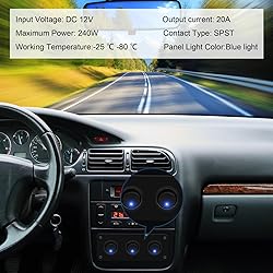Unique Design - 3 gang switch panel is designed for freely connecting and disconnecting DC 12V 20A circuits, SPST: ON-OFF 2-pole, LED color: blue, Color: blue, Maximum power: 240W Aluminum Panel Switch - Our rocker switch panel is made of aluminum switches and aluminum plates, with good waterproof and dustproof effects, and is more sturdy and durable than plastic switch panels Widely Used - Our toggle switches can be used as a headlight switch, fog light switch, wide view light switch, car refrigerator switch, car vacuum cleaner switch, car external equipment power supply, power supply for mobile phones, tablets, etc. Suitable for ships, yachts, RVs, buses, trucks Easy to Use - Copper pins are connected to the negative pole of the battery, the next pin is connected to the positive pole of the battery, and the last pin is connected to the positive pole of the device, our 12v switch panel equipped with a keyhole slot to prevent unnecessary rotation Lifetime Customer Service - We take full responsibility for our round rocker toggle switch and customer dissatisfaction. If there is any quality problem with our switch panel, please kindly contact us and we are always ready to help