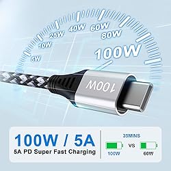 【Compatibility List】This Type C to Type C cable compatible with Google Pixel 9/9 Pro XL/8a/8 Pro/8/7a/7 Pro/7/6 Pro/6a/6/5a/5/4a 5G/4 XL/4/3a XL/3a/3 XL/3/2 XL/2/XL, Samsung Galaxy S25 Ultra/S25/S25+/S24 Ultra/S24/S24+/S23 Ultra/S23/S23+/S22/S22+/S22 Ultra/S21/S21+/S21 Ultra/S20/S20+/S20 Ultra/Note 20/Note 20 Ultra/Note 10/Note 10+/A55/A35/A14/A32/A53/A54/A34/(View “Product Description” for details). 【100W High Speed Charging】Data Transfer and Power Charging 2 in 1. This USB C Fast Charger Cable supports PD 3.0 & QC 3.0 fast charging, Charging Speed up to Max 5A/100W, charges Google Pixel 7a, Google Pixel 6 to 70% in 35mins, data/sync speed up to 500 Mbps (40~60MB/S), greatly improve your work efficiency. 【5A 100W Rapid Charging】Supports up to 100W (20V 5A) charging speed, usb c to usb c cable Build-in Emark smart chip, which makes this Google Pixel charger cable strong enough to support max 5A current 100W power through, as well as the Google Pixel charging cable 6 ft support fast charging for Type C devices. 【Nylon Braided USB C Cable】The Premium nylon braided cable adds additional durability and makes it flexible and non-tangled, passed 10,000 bending tests, and more than 10,000 plugs Tested, Premium Aluminum housing makes the cable more durable. 【What You Get】We provide 1* 6ft 100W 5A usb c to usb c fast charging cable, 24-Months Warranty and 24/7 customer service. If you have any questions, please contact us, we will reply you within 24 hours to provide you with a satisfactory solution.