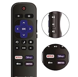 Replacement Remote Control fits for all Hisense Roku TV Smart 4K Ultra HDTV with 4 Shortcut APP Keys - Netflix, Disney Plus, Apple TV+, and HBO Max buttons Standard IR Remote Control fits for all Hisense Roku TV Smart 4K Ultra HDTV 【Not for Roku Stick, Roku Box, Player, Game, Express or other brand TVs; NO headphone jack, NO pairing button, NO voice search】 [Compatibe Model] - 43R6E 50R6E 55R6E 58R6E 60R6E 65R6E 43R6E1 50R6E1 65R6E1 75R6E1 65R7E1 43R6E3 50R6E3 55R6E3 58R6E3 65R6E3 43R7080E 50R7050E 55R6040F 55R6000E 60R5800E 65R6070E 65R6090G 43R6090G 50R6090G 55R6090G 55R6040G 32H4C 40H4C 48H4C 50H4C 55H4C and more!! Upgrade Chip, Durable Lifespan, High Quality, and Stable Performance. Designed for easy replacement and operation. No programming or pairing needed, just install 2 new AAA alkaline batteries to get It work. Package Content: 1 x IR Remote Control (Batteries and Instruction Manual are not included).