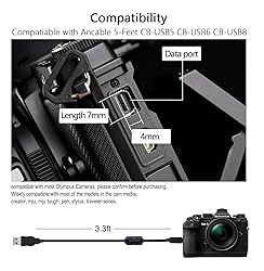 1. This is NOT compatible with all Olympus cameras. Please check compatibility list below before buying. Compatible: Exclusive Dedicated cable for Olympus Stylus Tough TG-620 iHS, TG-630 iHS , TG-830 iHS, TG-850, TG-860, TG-870, Stylus 5010, 7030, 7040, DZ-105, SH-1, SH-2, SH-21, SH-50, SH-60, SZ-16, SZ-17, TG-1, TG-3, TG-4, TG-310, TG-320, TG-610, TG-620, TG-630, TG-805, TG-810, TG-820, TG-835, TG-850, TG-860, X-940, X-960, XZ-1, XZ-2, XZ-10 Digital Cameras. 2.(This is not compatible with all Olympus Cameras. Before purchasing, Please refer to Figure 2 / Figure 3, please check the compatibility list below.) Also compatible with Olympus FE-4020, FE-4030, FE-4040, FE-5030, Mju 7040, Mju 7050, Mju 9010, Tough 3000, 6020, 8010, SP-100, SP-100EE, SP-620UZ, SP-720UZ, SP-800UZ, SP-810UZ, SZ-10, SZ-11, SZ-12, SZ-14, SZ-20, SZ-30MR, SZ-31MR. Also compatible with OM-D E-M1, OM-D E-M10 Mark II, OM-D E-M5 Mark II, PEN E-PL7, PEN E-PL8. 3.Function: This cable connects your digital camera to a USB-supporting computer, USB hub or photo printer for photo transfer. Compatible with Olympus model C170, C180, C480, C500 Zoom, C5500, C7000, C-170, C-180, C-480, C-500 . Also known as: Camera cord to computer Olympus Stylus Tough Charger, USB Cable For Image Transfer Supports Charging in Selected models Olympus CB-USB5 CB-USB6 USB Cable Cord Lead. 4.New High Quality USB 2.0 Camera Data Transfer Cable cord. The transmission rate is up to 480Mbps, and the transmission speed is faster than most standard alternative products. 5.Cable length: 100 cm/3.3 feet, the package includes: 1 * USB data transmission cable, and provides a 12-month worry-free warranty and 24-hour easy-to-obtain customer service.