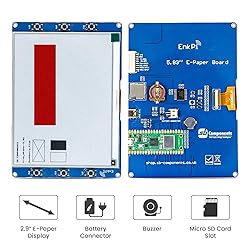 • Introducing EnkPi - the ultimate ePaper display board based on Raspberry Pi Pico W. With its partial refresh support and Raspberry Pi Pico E-Paper E-Ink Display Module, EnkPi is perfect for anyone looking for a high-quality display that is both powerful and flexible. EnkPi is powered by Raspberry Pi Pico W and features both micro and type C USB connections for programming and power, respectively. It also supports Micro SD cards and includes a buzzer for audio indication. The onboard 6 programmable buttons make EnkPi easy to use, and the e-paper display offers a wide viewing angle of over 170 degrees - similar to paper. The display color is black-white-red, adding versatility to the product.Features:Powered by Raspberry Pi Pico WMicro (for programming) and type C USB (for power) Micro SD card supportBuzzer for audio indicationOnboard 6 programmable buttonsE-paper with Wide viewing angle >170 degrees - similar to paper Display color Black-White-Red3.7V Battery SupportOnboard RTC for real-time projectsAdditional Dual feature GPIO Pins breakout for interfacing with other peripheralsKit Content:1 x EnkPi Board