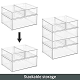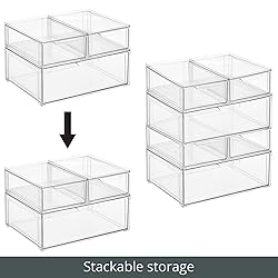 mDesign Plastic Stackable Bathroom Storage Organizer Bin Containers with Front Pull Drawer for Bathroom Countertop, Vanity, Closet Shelves - Holder for Accessories, Lumiere Collection, Set of 3, Clear