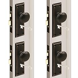 MaxxGeek Mortise Keyed Lock Set with Classic Knobs, Perfect for Replacing Broken Antique Door Knob Sets, Fits 1-3/8 in.-1-3/4 in. Interior Doors, Oil Rubbed Bronze, 4 Pack