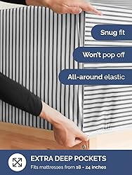 Extra Deep King Fitted Sheet - Hotel Luxury Single Fitted Sheet Only - Easily Fits 18 inch to 24 inch Mattress - Ultra Soft, Wrinkle Free with Extra Deep Pockets - Breathable & Comfy - Grey Stripes
