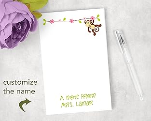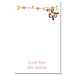 Precious Papers Personalized Pink Monkey Notepad, Monkey Gift Monkey Classroom Supplies Custom Monkey Teacher Gift For Back To School Or Teacher Appreciation