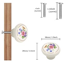 • These super cute retro ceramic orchid flower round pattern cabinet and drawer knobs especially suitable for kids bedroom, like dresser, closet door, drawer, cabinet, wardrobe, cupboard etc. Specification: Material: Ceramic Color: Flower and White Style: Vintage flower knobs Knob Size: Length*Width*Height:: 38mm (1.5inch)*38mm (1.5inch)*28mm (1.1inch) Screw Size: 25mm(1inch) Package: 4pcs knobs + 8pcs screws