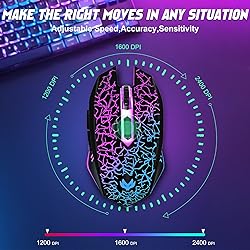 ⚡️【𝐖ireless freedo𝗺 & 𝐒tab𝗹e Co𝗻𝗻𝗲ction】The wireless mouse connects with the 2.4G wireless Tech via the USB receiver, ensuring reliable connection with an increased working distance of up to 10m (33ft) and eliminates delays, dropouts, and interference. Plug and Play, no drivers needed.✅Mini USB receiver is stored back of the mouse. ⚡️【3 𝐃𝐏I 𝐀djustab𝗹e & 𝐄xten𝗱e𝗱 𝐁attery 𝐋i𝗳e】This rechargeable gaming mouse can be adjusted within 3 levels DPI (2400-1600-1200) 𝗯𝘆 𝗽𝗿𝗲𝘀𝘀𝗶𝗻𝗴 𝘁𝗵𝗲 D𝗽𝗶 B𝘂𝘁𝘁𝗼𝗻, you can freely choose your cursor speed. Besides, the wireless gaming mouse offers a battery life of up to 20 days ( lights on) and 25 days ( lights off), providing uninterrupted usage. It can also be used in wired mode while charging. ⚡️【𝐒ilent Clicks & Comfortab𝗹e 𝐆rip】PC gaming mice make no noise when clicking, no worry for disturbing others, suitable for public places such as office, library dormitory, cafe, etc. Ergonomic Design reduces the weight and makes the ergonomic mouse more flexible and easier to use for a long time without fatigue. Say goodbye to hand pain. ⚡️【𝐕𝗶brant 𝐁acklight】 The flowing rainbow backlight mode of the RGB gaming mouse creates a visually stunning environment and illuminates your workspace, adding a vibrant atmosphere. Perfect for nighttime use without any hassle. Light can be also turned off if you don't want it with the convenient switch under this computer mouse. ⚡️【𝐖i𝗱𝗲 Compatibility】Laptop mouse is tested for up to 5 million clicks, can be used for PC, Laptop, desktop, Computer, etc, and support Windows 7/8/10/XP//VISTA/MAC OS/Android/ios, etc. 💎【Q𝘂a𝗹𝗶𝘁𝘆 A𝘀𝘀𝘂𝗿a𝗻𝗰𝗲, G𝗿𝗲a𝘁 G𝗶𝗳𝘁 F𝗼𝗿 B𝗲𝗹𝗼𝘃𝗲𝗱 O𝗻𝗲🎁】A perfect gift for your Kids, Lover~ We promises 18 MONTHS AFTER-SALE SERVICE ( A 𝟏𝟎𝟎% refund or replacement). PLZ contact us if there exists any problem with the mouse. HOW TO CONTACT US➡️ 1. CLICK OUR STORE NAME "Lulabboard" 2. CLICK THE "Ask a question".