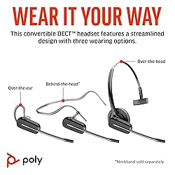 Poly CS540 Wireless DECT Headset with HL10 Lifter (Plantronics) - Single Ear (Mono) Convertible (3 wearing styles) - Connects to Desk Phone - Noise Canceling Microphone - Amazon Exclusive