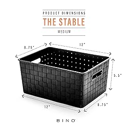 BINO | Plastic Storage Baskets Medium - Black | THE STABLE COLLECTION | Multi-Use Storage | Rectangular Cabinet Organizer | Baskets For Organizing with Handles | Home Office Organization and Storage