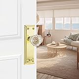 newliplace 2 Pack Vintage Single Sided Crystal Dummy Door Knobs Interior, Antique Long Plate Glass Dummy Door Knobs in Polished Brass/Gold