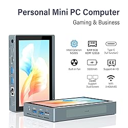 HEIGAOLA Mini PC, Small Computer with Screen Celeron N5095 (Up to 2.9GHz) 8GB RAM128GB SSD eMMC Micro pc, Micro Desktop Touchscreen Computer Support Dual 4K@60Hz Display WiFi 5,BT 5.2