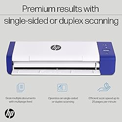 ON-THE-GO SCANNING MADE SIMPLE | Meet the Fastest & Lightest Sheetfed Scanner in its Class! | The HPPS200 Mobile Document Scanner With Automatic Feed Tray Lets You Convert Stacks of Papers Into Digital Files—No Heavy, Expensive Equipment Needed! | Wide Compatibility Makes it Easy to Send Docs & Images to Your PC or Mac Computer, Laptop, or Similar Windows/MacOS Devices for Amazing Versatility SAVE TIME WITH DOUBLE SIDED SCANNING | Despite its Slim Profile, This Office Essential Offers Reliable 25ppm [25 Pages Per Minute or 2.4 Seconds Per Page] Operating Speed for Small- to Medium-Batch Jobs in Black & White & Color | Convenient Duplex Feature Scans Both Sides of Your Document in a Single Pass, Speeding Up Scan Time & Improving Your Productivity When Converting Invoices, Contracts, Plans, Reports & Letters DESIGNED FOR LIGHTWEIGHT PORTABILITY | Slip Inside a Bag or Briefcase, Then Travel from Home to Office to Business & Beyond! | Compact, Portable Styling Suits Your Busy Lifestyle While Providing All the Capabilities of a Professional-Quality Document Scanner Including Beautiful 1200 dpi Resolution, Versatile Paper Size Ranging from 2” x 2.9” (Minimum) to 8.5” x 14” (Maximum) & Versatile Conversion to PDF, JPG & Other File Formats STUNNING MULTI-PAGE SCANS IN SECONDS | Device Easily Connects Via USB [Cable Included] & Powers Via Basic AC Wall Adapter | Integrated Rear Tray with Auto-Feed Lets You Stack Multiple Pages for Fast, Organized Scanning in Batches, Then Folds Down Neatly When Not in Use | Perfect for Commuters, Small Business Owners, Legal Practices, Tax Preparers & Unique Tasks Such as Cards, Photos, Reports & Receipts WORK SMARTER WITH HP WORKSCAN | Download Our Free, Easy-to-Use Software or App for Windows & MacOS to Start Scanning! | Simple, Intuitive Platform with Auto-Scan & Size Detection Allows You to Easily Adjust Document Settings; Preview & Zoom in on Scans; Crop, Edit & Optimize Image Quality; Clean Up Background, Edges & Holes; & Save to Destination with Just a Few Clicks—No Tech Savvy Required! BIG OFFICE EQUIPMENT COMES HOME | Whether You’re Always On the Go or Always Work from Home, HP Supplies You with Affordable, High-Quality Office Essentials that Strike the Perfect Balance Between Personal & Professional | For Your Low to Medium Volume Digitizing Tasks, or a Smart Gift for Administrative Professionals, Students or Avid Travelers, Shop Our Complete Line of Scanners Scaled for Everyday Productivity