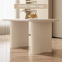 Generous Dining Tabletop: The tabletop measures 54.52 inches in length, providing ample space for multiple place settings, serving dishes, and decorative centerpieces. Comfy Ergonomic Dining Chairs: Curved Backrest: Features a backrest that is curved to follow the natural shape of the spine, providing crucial support to the lower back. Aesthetic Sturdy Support Legs: The ripple legs of both the table and chairs serve as accentuating details, adding a touch of sophistication to the set. These unique design elements not only contribute to the modern aesthetic but also create visual interest, making the dining set a focal point in any room. Versatility in Placement: This dining set is highly versatile and can seamlessly integrate into various living spaces. Whether it's placed in the dining room for family gatherings, the kitchen for casual meals, or even in a home office setting for a stylish workspace, the set adapts effortlessly to different environments. Its modern design ensures that it complements a wide range of interior styles. Sturdy & Durable 1.93" Thick Dining Table Top: Solid Useful: The 1.93" thickness contributes to a more stable and substantial feel, reducing wobbling or instability during use. Support for Heavy Loads: Can support heavier items without the risk of sagging, ideal for dining tables, desks, or work surfaces that frequently hold substantial weight.