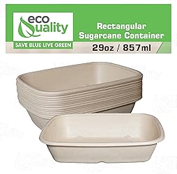 29 Ounce Compostable Paper Bowls: Easily serve your favorite Meals, Burrito Bowls, Quesadillas, Salads using our ecologically friendly food oblong food container plates. These biodegradable bowls are a great choice for your daily meals, restaurant takeout orders, food trucks, carry out and to go. These disposable bowls are great for special events, catering and other types of food service environments. These containers are also Microwave Safe Bowls and Freezer Safe Bowls! Heavy Duty Sugarcane Material: These 29oz Bowls are made from 100% sugarcane fiber a sustainable, renewable and biodegradable material. These rectangular bowls are an amazing alternative to Traditional Paper and Plastic Bowls we make our disposable food storage containers easily degradable so you can use them guilt free while helping the environment. Transport your favorite meals in our disposable bowls without the worry of bending or breaking. Heat Resistant: Our disposable bowls are designed to withstand hot and cold temperatures making them great for a wide variety of food item(s). From hot foods to chilled ice cream store and transport your favorite foods with confidence. These compostable bowls are also microwave safe allowing for easy heat up straight from your fridge! Great as meal prep containers, salad bowls, burrito bowls and much more! Generous Capacity: These disposable bowls come with a 29oz capacity, providing ample space for your favorite foods, salads, pastas and desserts. Our rectangular oblong container shape adds a touch of elegance to any table setting or restaurant environment. Easy bowls to take with you on the go! Enjoy your favorite meals without harming the environment! Versatile and Multi Purpose Bowls: Our EcoQuality biodegradable bowls are perfect for a variety of occasions including parties, picnics, barbecues, gatherings, catering events and more. Enjoy easy cleanup with our disposable sugarcane bowls simply toss the bowls in your compost bin or dispose of them guilt free when done with use. Many uses from Salad Bowls, Burrito Bowls, Acai Bowls and much more! Help us create a cleaner planet for the future! Microwave & Freezer Safe: Our disposable bowls are great to use when reheating your favorite meals in the microwave. Enjoy the versatility of our bowls by preparing your favorite meals and placing the bowls in the freezer for future reheating. Great as meal prep bowls, portion control and to go meals!