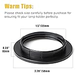 Dimensions: It is 1.5 inch (39 mm) inner diameter, 2.28 inch (58 mm) outer diameter. Suitable for glass lampshade and more lamps Easy to Use: Use this ring to fix and add a beautiful shade to your lamp Application: Replacement screw collar rings for medium base E26 socket Package Content: Two pieces 1.5 inch (39 mm) inner diameter E26 lamp holder fixing outer rings Item Color: Black