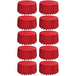 REWOMC 10 Pack Round Tablecloths - 120 Inch Red Polyester Cover for Round Tables, Stain and Wrinkle Resistant Washable Fabric Cloth for Wedding Banquet Parties